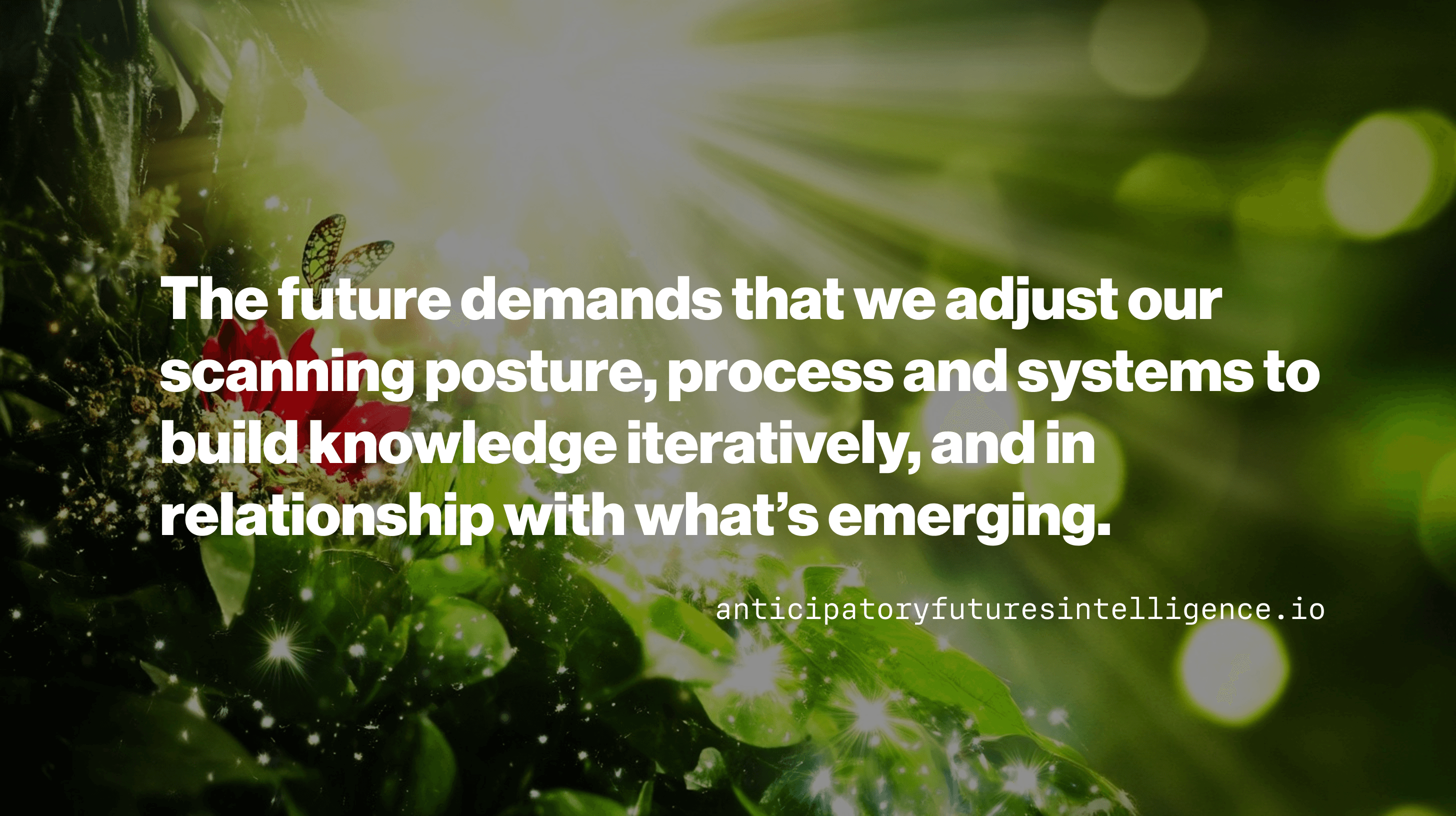 The future demands that we adjust our scanning posture, process and systems to build knowledge iteratively, and in relationship with what’s emerging.