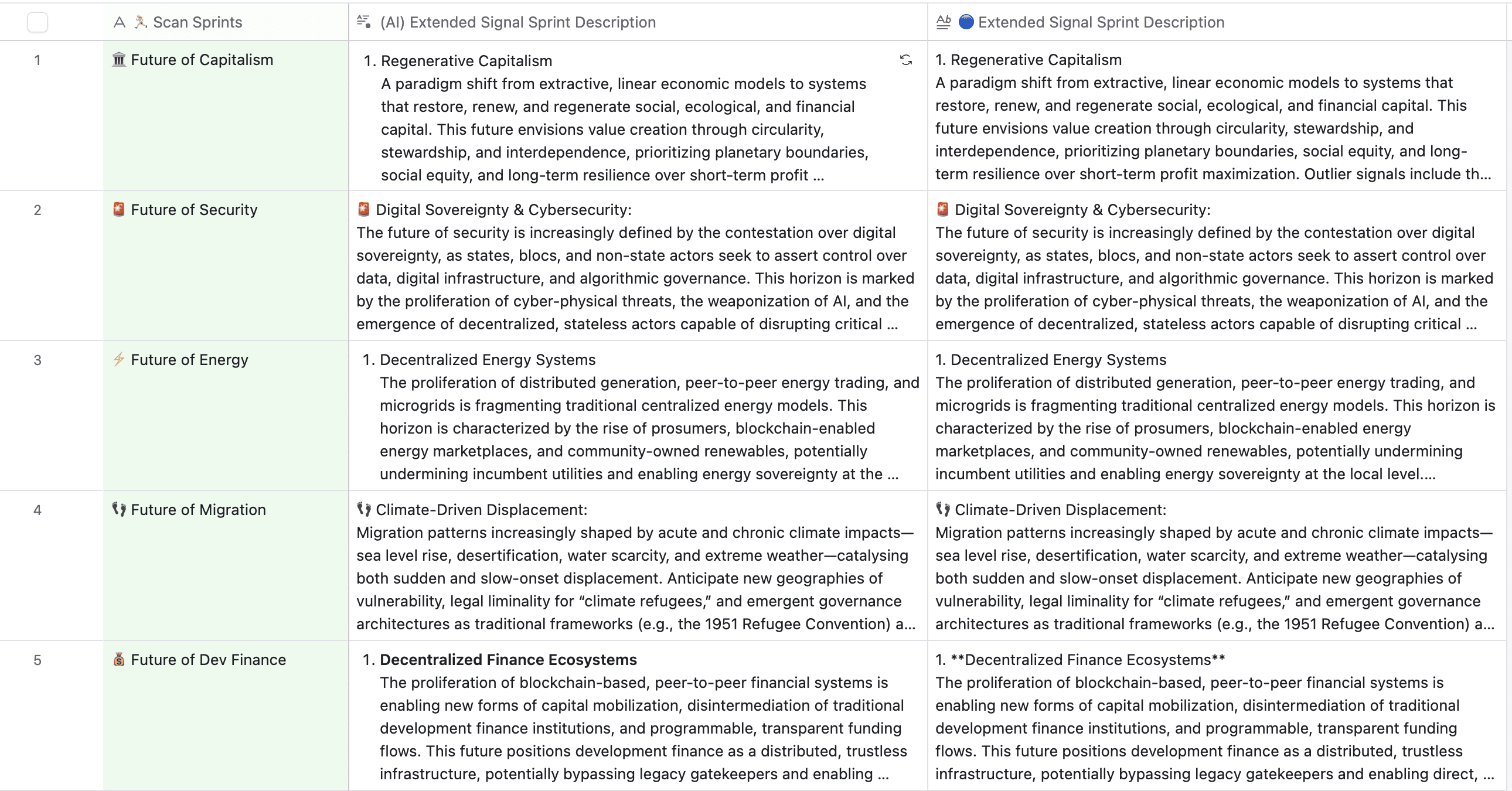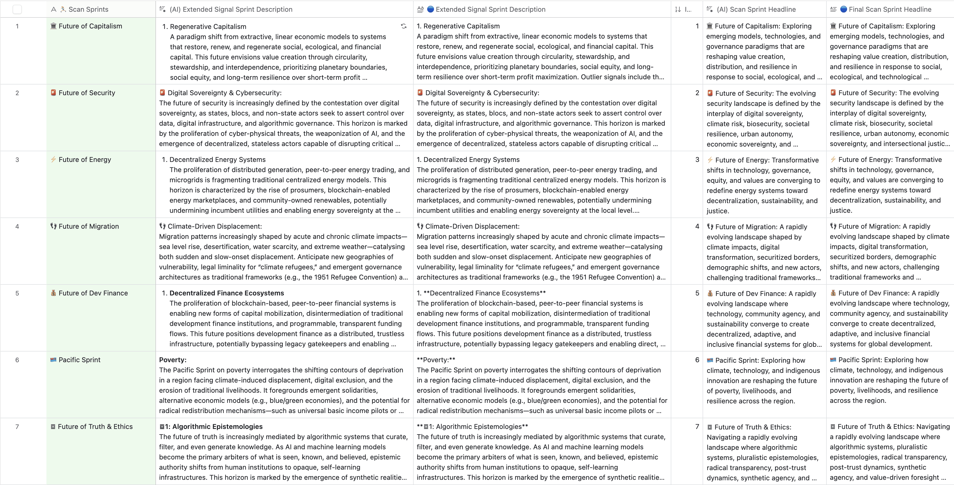 Task: Write me a description of each [🏃🏼♀️Scan Sprint] that positions it toward the future so we can use it later to identify which signals of change or sources might be relevant to each sprint.